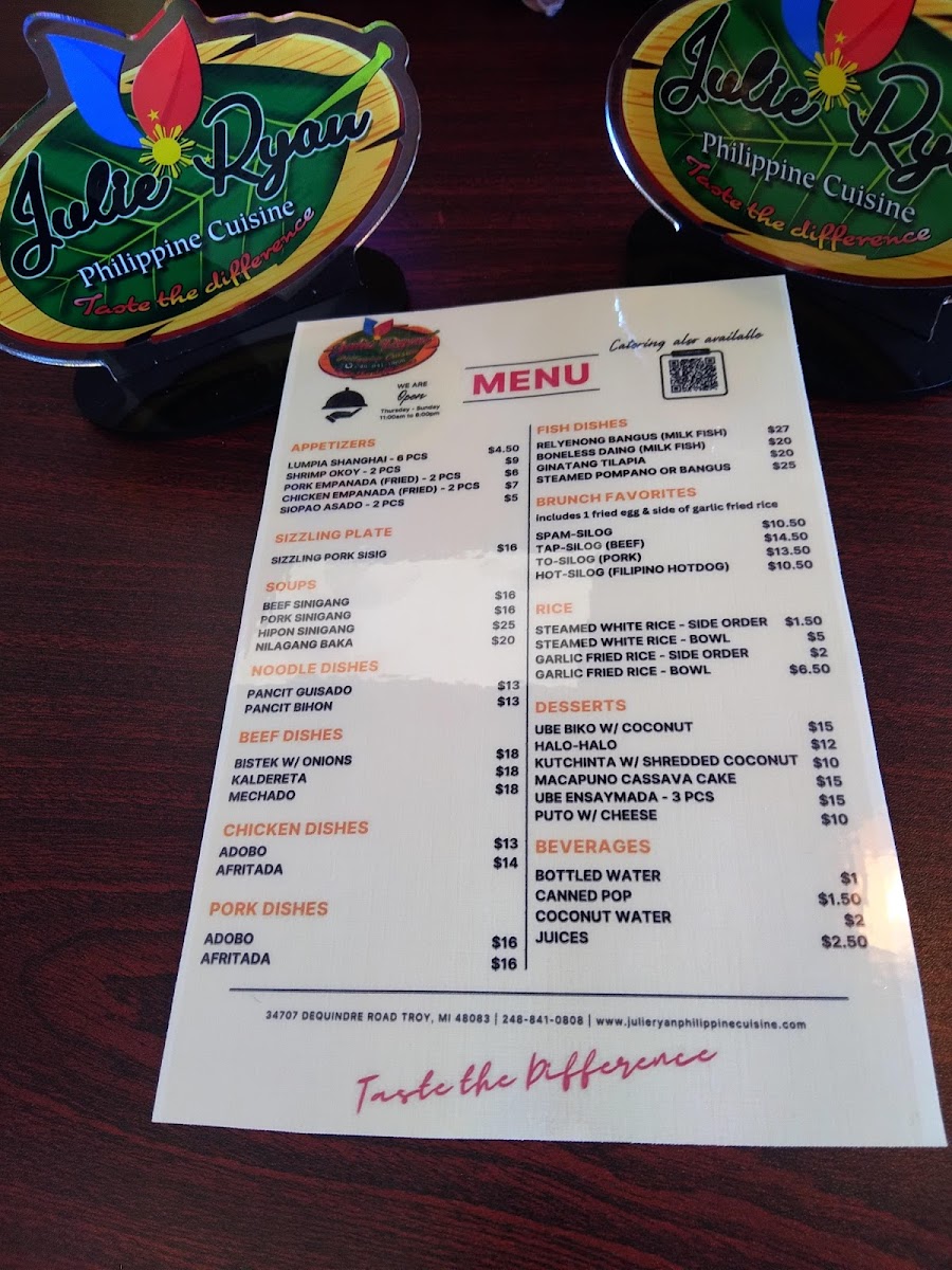 Julie Ryan Philippine Cuisine Menu (Update 2025)