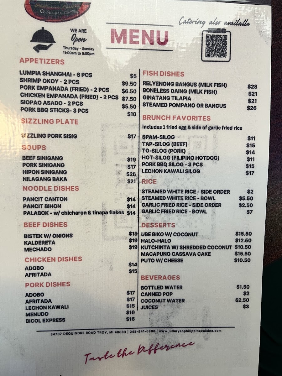 Welcome to Julie Ryan Philippine Cuisine, a cozy haven for Filipino food enthusiasts located in Troy, MI. Their menu offers a delightful blend of authentic flavors, ranging from crispy lumpia to hearty chicken adobo, and the must-try kaldereta, praised by locals for its rich taste. Banquets of comfort await you, as many dishes encourage family-style sharing, enhancing your dining experience.
